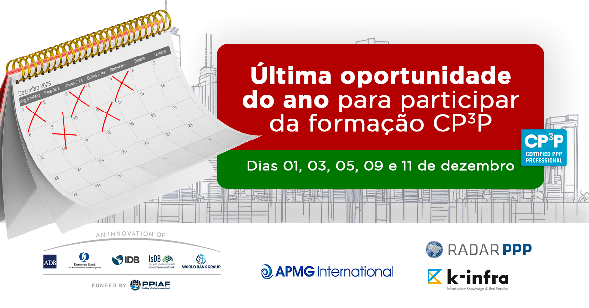 "A iniciativa do Grupo Banco Mundial e dos outros bancos multilaterais, em parceria com a APMG International, de criar o programa de certificação do CP³P, permitirá que haja o nivelamento dos conhecimentos relacionados aos processos de estruturação e gestão de contratos de parcerias. Especificamente no Brasil, percebe-se um grande esforço de alguns entes da federação, e do próprio Governo Federal, no sentido de se estabelecer padrões de desenvolvimento de projetos de PPP. Ocorre que, embora haja bons estudos de casos, há ainda uma carência de conhecimento que entendemos ser possível de ser atendida por meio da promoção e incentivo ao CP3P - promovido no Brasil pela Radar PPP. Os guias disponibilizados pela APMG International são apresentados com linguagem acessível e muito bem estruturados, contemplando em detalhes todas as etapas de uma PPP, dando condições às equipes de Unidades de PPP obterem o conhecimento de maneira rápida, precisa e com baixo investimento."